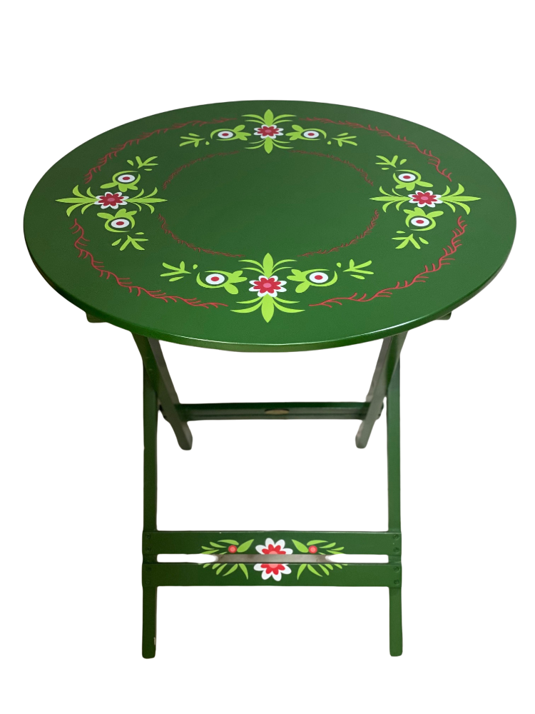 Mesa estilo sevillano plegable redonda de 70 cm de diámetro de color verde