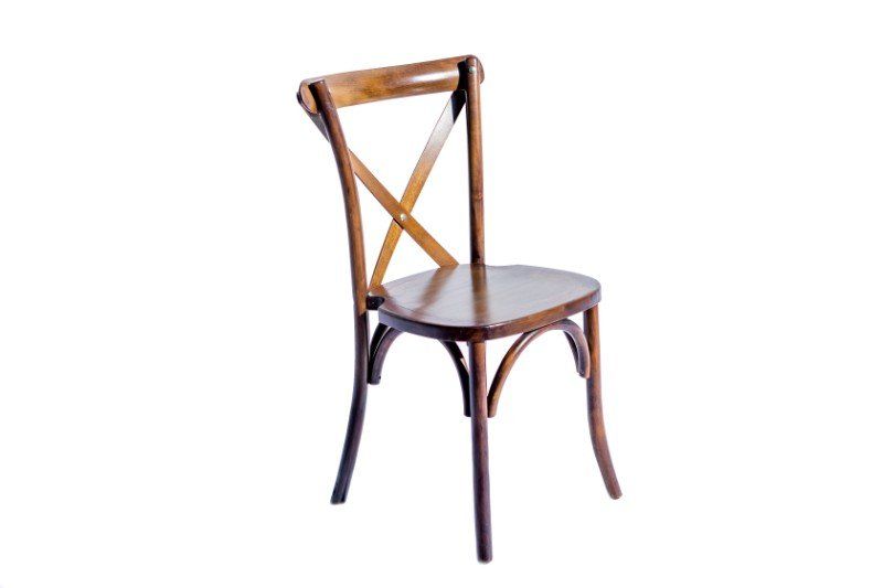 La silla Crossback de color Natural fabricada en madera de olmo se distingue por un sorprendente respaldo cruzado y el suave asiento de ratán natural que ensalzará tu evento de inmediato
