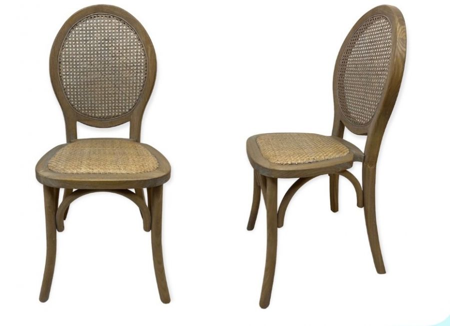 Silla Inglesina Decapada de Color Madera fabricada en madera de abedul macizo de estilo clásico con respaldo y asiento de rejilla de ratán muy cómodo y confortable.