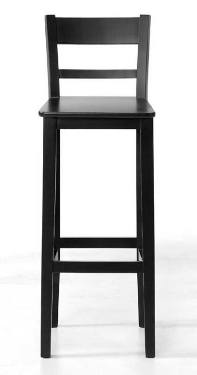 Taburete de madera para hostelería en color Wengué, con respaldo confortable que cuenta con dos barras de diseño horizontal.