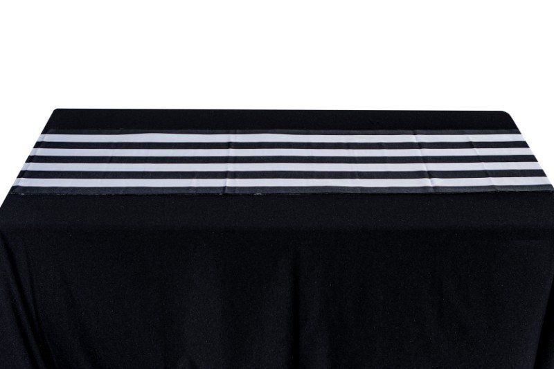 Camino de mesa de tela listado en rayas blancas y negras