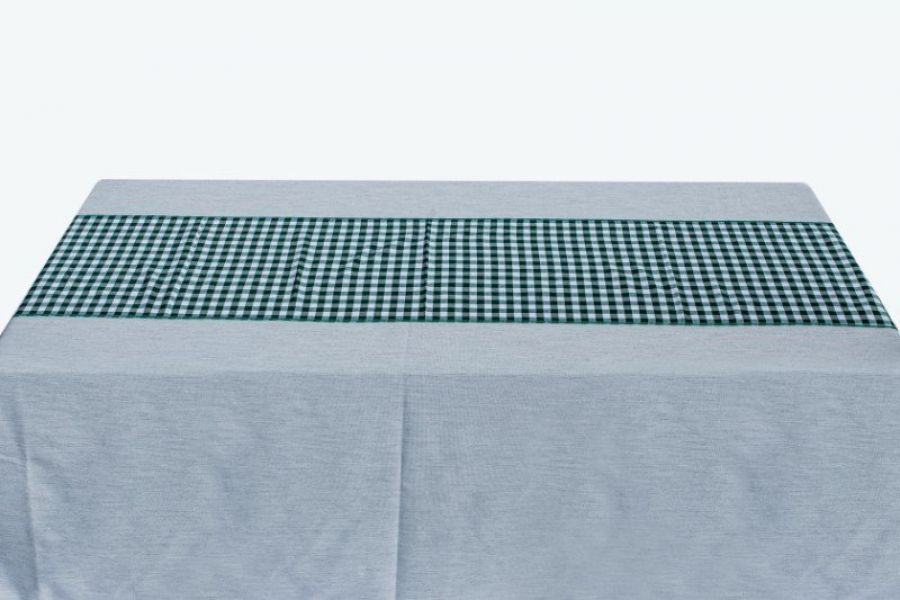 Camino de mesa de tela de cuadros vichy de color verde y blaco