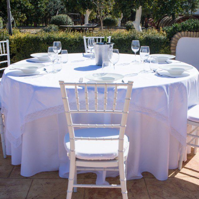 Cubre mantel para mesas redondas de 1,60 y 1,80 M de encajes en color blanco