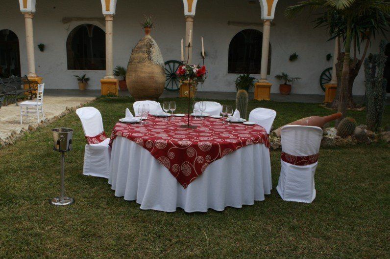 Cubre mantel para mesas redondas de 1,60 y 1,80 M con motivos espirales de color rojo