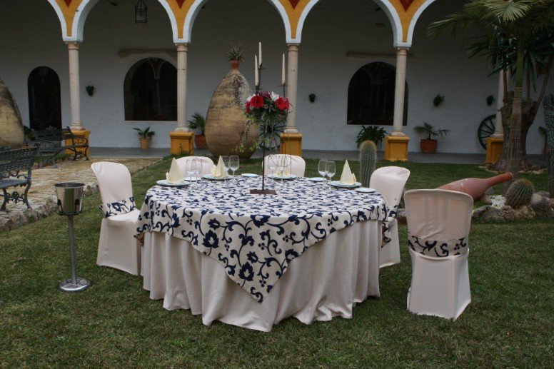 Cubre mantel para mesas redondas de 1,60 y 1,80 M con estampados negros en forma de tulipanes
