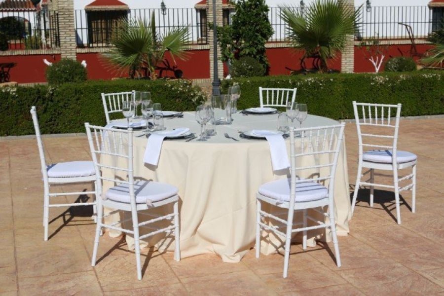 También se puede utilizar en mesas rectangulares de 1,80 × 0,75 m y mesas altas de cóctel
