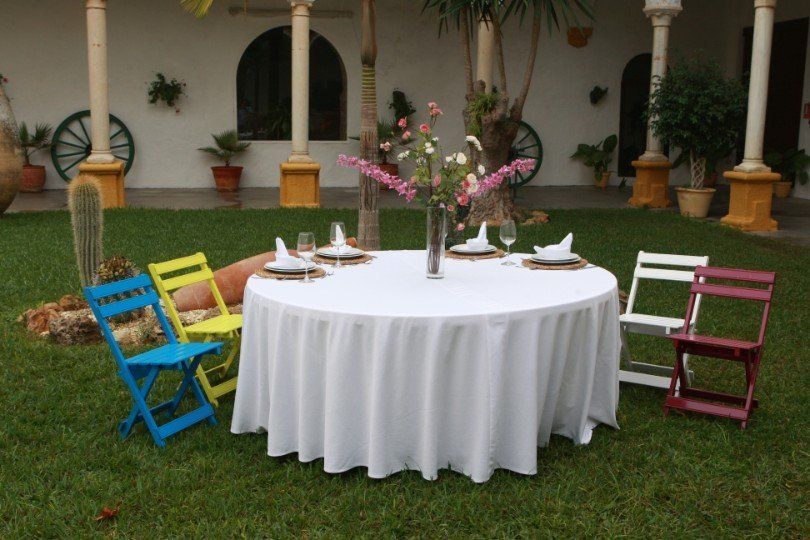 También se puede utilizar en mesas rectangulares de 1,80 × 0,75 m y mesas altas de cóctel