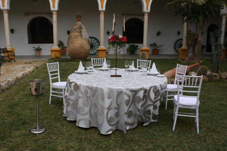También se puede utilizar en mesas rectangulares de 1,80 × 0,75 m y mesas altas de cóctel
