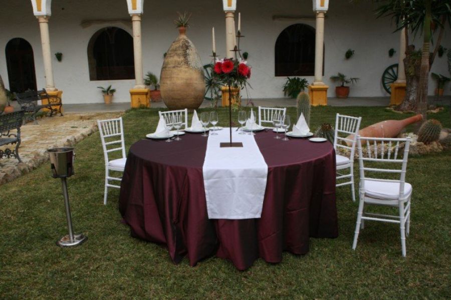 También se puede utilizar en mesas rectangulares de 1,80 × 0,75 m y mesas altas de cóctel