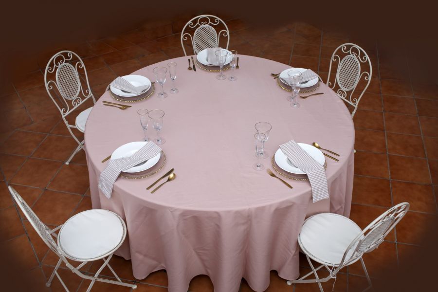 Mantel redondo color rosa maquillaje
