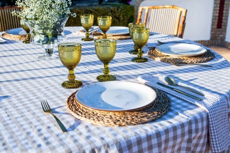 Mantel redondo vichy negro y beige