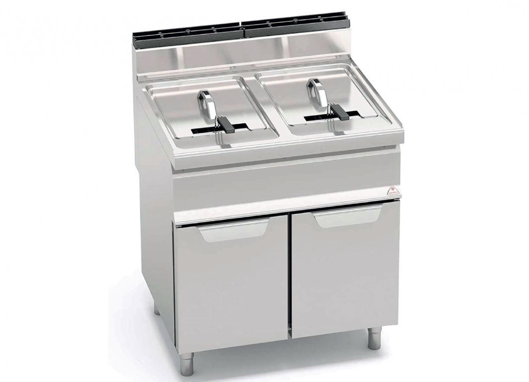Freidora de gas industrial con doble depósito de 12 L. cada uno