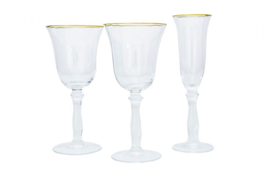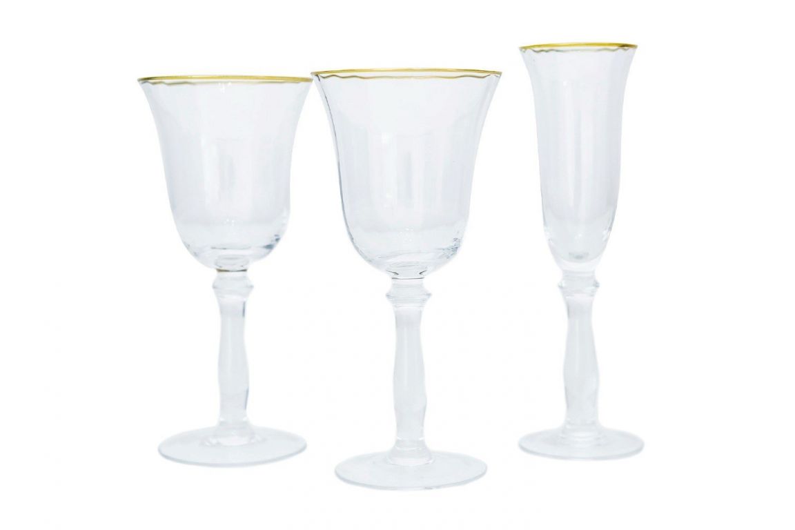 Copa de cristal tallado con el filo dorado